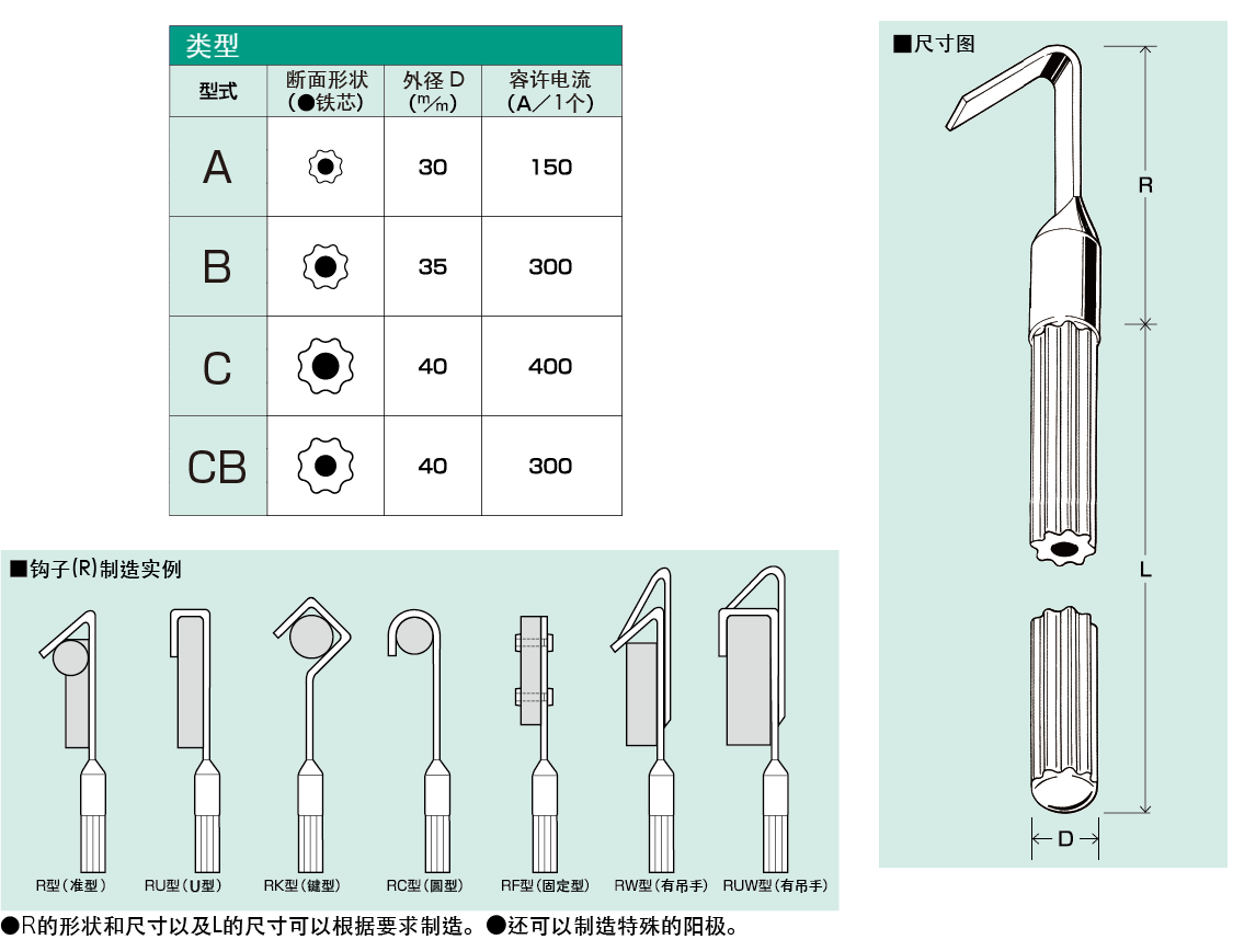 厚度和长度可以根据电镀槽的大小和负载电流自由设定!